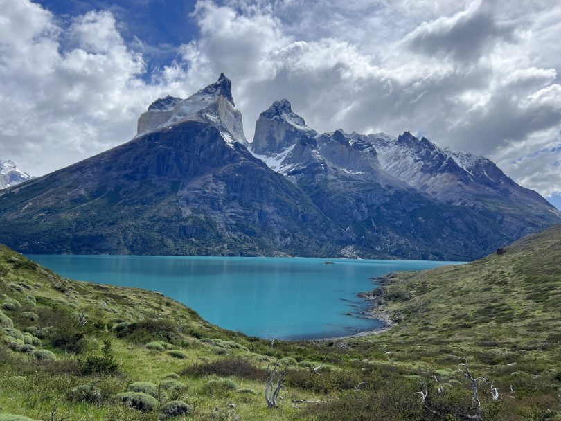 After lunch, we set off for the Mirador Cóndor trail, a short hike with a steady climb that gets your heart racing within the first few minutes. The path follows an open hillside with little vegetation, offering expansive views almost the entire way. As we gain elevation, Lake Pehoé appears in intense shades of blue, contrasting beautifully with the peaks of the Paine Massif in the background.